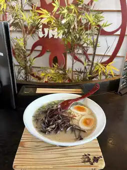 This ramen restaurant is characterized by its thin noodles and mild pork bone soup, and is so popular that there is always a line. There is a secondary parking lot a little further away, and the gyoza and rice balls are also popular.