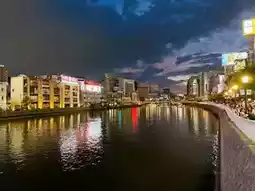 The river in the photo is Nakasu River, and the hotel with the delicious-looking breakfast is Hotel Hokke Club Fukuoka~!