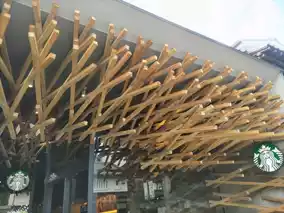 This Starbucks was designed by architect Kengo Kuma. You can bring your own umegae mochi. I checked with the staff when I ordered a matcha drink, and they said yes. I enjoyed my Starbucks drink and mochi at my leisure.