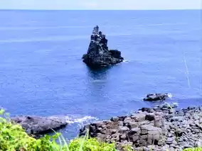 From Gonoura, I took a bus to Ashibe Port. Here, I rented a bicycle and enjoyed sightseeing. The highlights of eastern Iki Island are the shrines and other power spots along the coast. Luggage storage is available at the Ashibe Port Ferry Terminal, the gateway to the sea, for a fee. Heading south from Ashibe Port is Kiyoishihama Beach, and continuing on is Konpira Shrine (Umanose). Continuing on, I cycled to Sakyo-hana, enjoying the sea breeze. I circled the cape and headed to Yahataura, famous for its female divers. The Six Jizo of Yahataura are lined with jizo statues wearing red hoods in the sea, and are called "Harahoge Jizo" because their bellies are carved into round shapes. We also came across Kojima Shrine, which experiences ebb and flow similar to Mont Saint-Michel. The approach to this mystical shrine appears just before and after low tide, and you can walk along the path formed by the sea parting to visit, but we missed the low tide, so we only admired it from afar. If you have the time, plan your visit taking into account the ebb and flow of the tides. We visited these spots from Ashibe Port in about four hours. We left Ashibe Port at 2:25 PM and took a boat to Hakata Port at 3:30 PM to Hakata.