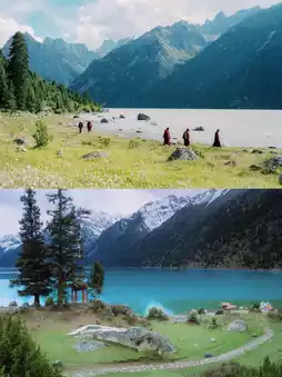 The altitude here is about 4,000 meters. There are cattle grazing leisurely, clear lakes, snow-capped mountains in the distance, and dense forests surrounding it. Everything is so beautiful that it takes your breath away and makes you want to cry!