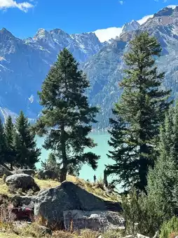 💯Very few people can get here, but it is really beautiful. Snow-capped mountains, forests, and lakes are still very primitive. It takes more than ten minutes to walk to the lake. The whole lake is milky green, and the snow-capped mountain in front is the famous Que'er Mountain.