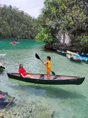 You’ll need to go to del Carmen port and rent a boat (P1,600) and environmental fee of P50 per head. The boat ride going to the lagoon is amazing as you’ll be seeing hectares and hectares of mangroves with beautiful mountains. The lagoon itself is very busy with tourists. They have a dive board you can jump, rent paddle boards and paddle around the lagoon. Half day here is enough time to spend.
