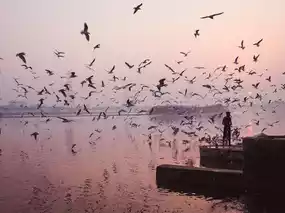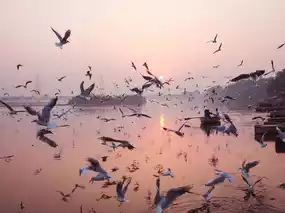 Yamuna Ghat in Delhi offers a serene escape from the city’s chaos, especially during the early morning hours. As the mist hovers over the calm waters, the sight of thousands of seagulls gracefully flying above creates a mesmerizing spectacle. The gentle ripples of the river and the rhythmic flapping of wings form a symphony that soothes the soul. Photographers and nature lovers will find it a visual treat, capturing moments of pure beauty. The spiritual ambiance, enhanced by nearby ghats and morning prayers, adds to the peaceful experience. A must-visit for anyone seeking tranquility and a deeper connection with nature.