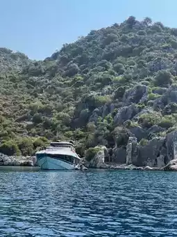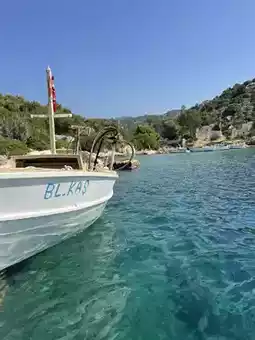 We left from Kaş early in the morning. The weather was already warm, and the sea was completely calm. Once the boat pulled away from the harbor, things immediately felt more relaxed — no rush, no noise, just the sound of the waves and fresh air.