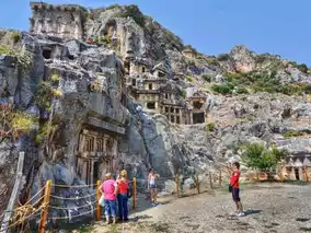 Demre, was known as Myra in ancient Lycian times, is on the Mediterranean coast of Turkey, in the province of Antalya. The town was important enough by the 4th century to have its own bishop and was the home of Saint Nicholas of Myra, the original Santa Claus. Before the tourist boom began in the early 1980’s Demre was and still, the party is dependent on agriculture, with pomegranate, citrus fruits and vegetables being grown year-round in greenhouses. Local handicrafts, including rug making and the annual camel wrestling festival, also increase income for the town.