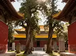 By noon, the autumn sun softened, and I arrived at Zhongyue Temple. The red walls shone vividly in the autumn light, the yellow tiles glowing warmly, resembling a warm-colored palace nestled in the mountains. Walking along the central axis, the copper bells at the eaves jingled in the autumn breeze, their "ding-ding-dang-dang" sound clearer than usual. The ancient cypress in front of the main hall remained robust, its bark cracks more distinct under the autumn sun. A few golden leaves hung from the branches, gently swaying in the wind. I stepped closer to touch the trunk; the rough texture held the calmness of autumn, as if over two thousand years of history were condensed into this tranquil autumn moment. Inside the hall, incense smoke curled around the statue of the "Great Emperor of Zhongyue," whose flowing robes seemed alive. The sound of the copper bells mingled with the autumn wind, blurring the line between the autumn sounds of today and the morning bells of a thousand years ago.