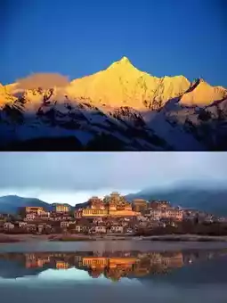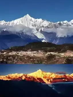 Golden Mountain in the Sunlight: Meili Snow Mountain is very spectacular in the morning light and is a paradise for photography enthusiasts.