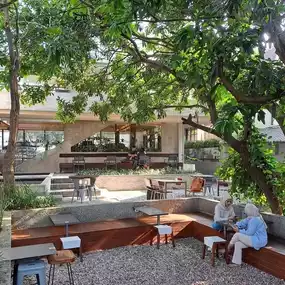 The white box building designed by Zhuang Ziyu of BUZZ is a dramatic touch embedded in a complex cave-like space structure under the simple geometric frame. A series of holes and framed views play with light and shadow. As you go up the spiral staircase, the two main colors of black and white intertwine, and the diverse materials collide with each other.