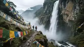 Circling mountains, rivers, and sacred waterfalls, all to meet the Shangri-La in your heart