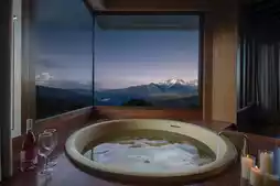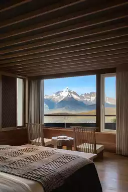 No need to wake up early to rush through itineraries, no need to bundle up in thick coats and wait in the cold wind for the perfect light. Just snuggle on the sofa in your room, wrapped in a cozy blanket, and look up to see the snowy peaks in the distance.