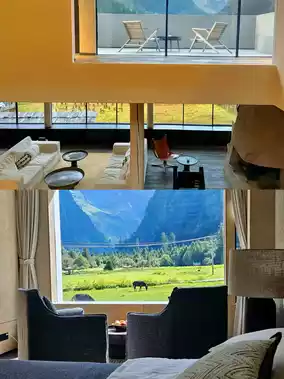 Each room is equipped with extra-large floor-to-ceiling windows, framing the snow mountain directly inside! Lie in bed in the early morning and encounter the stunning "Sunlight on Snow Mountain"🌅, instantly healed by the golden light~