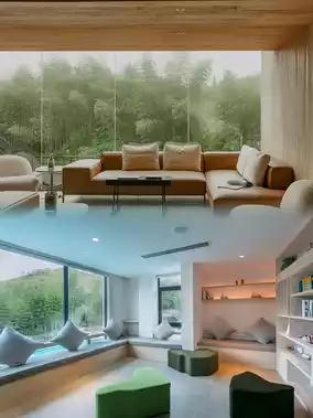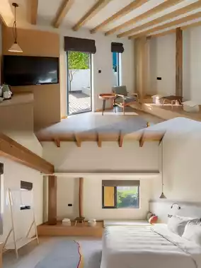 The B&B boasts 5,000 square meters of indoor and outdoor activity space, including a wealth of family-friendly entertainment facilities: a lawn, infinity pool, children's playroom, slide, Lego, book bar, mini cinema, stream fishing, vegetable garden experience, table tennis, trampoline, and mountain bikes. Here, whether you're enjoying a quiet cup of tea indoors or getting close to nature outdoors, you can escape the hustle and bustle of the city and enjoy a deep, immersive countryside experience.