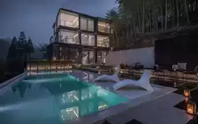 The project site is located on a hillside next to the village road in the south of Moganshan, Zhejiang Province, surrounded by unique scenery and a broad view. The original site was quite cramped, and the design aimed to create as many spatial levels as possible within the relatively small area. The original site was divided into three, forming three courtyards. These three courtyards with different characteristics form a cyclical closed loop, creating a garden path around the house.