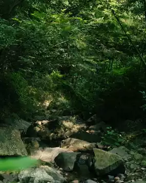 The stream meanders down from the mountains, slowly flowing through the verdant valley, stirring layers of ripples.