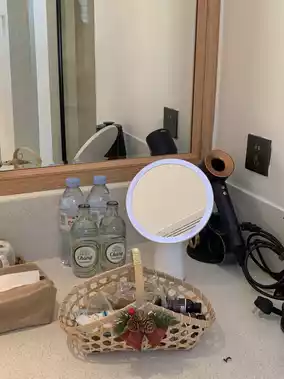 Dyson hairdryer, several kinds of calming and sleep-inducing herbal plants by the private bath.