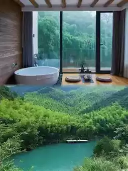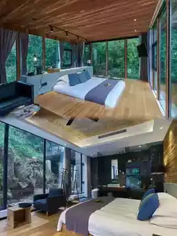 270-degree large floor-to-ceiling windows to lie down and watch the bamboo sea