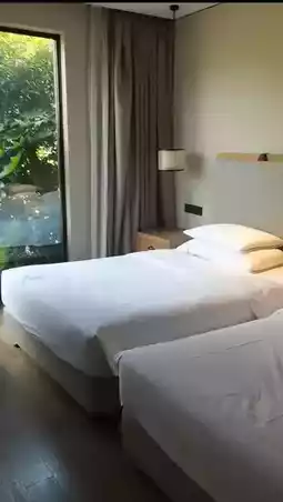 Staying in a wooden twin suite, the room area is about 50 square meters, with a foyer, living room, bedroom, bathroom, and balcony. The hotel water park can be accessed multiple times. After arriving in the afternoon, first go to the water park and play until eight o'clock. There is a DJ in the evening, and after it ends, have dinner at the first-floor beef hotpot, costing around 100 per person. The next day, breakfast is served at the tropical rainforest restaurant, with a rich variety. After breakfast, continue at the water park. The children love the thrilling slides and the relaxing wave pool the most, experiencing surfing and elephant trunk climbing. The rapids river is easy to choke on water, so we only played once. Fantasy Island mainly features slides and indoor castle-like projects. The hotel said it is suitable for young children, so we didn't play. Flora Garden is a small tropical botanical garden, the gate is open, and it is unattended, so you can enter directly for a visit. Early check-out can exchange some coins for the top player, with projects similar to small arcade games. In short, the environment is pleasant, the price is reasonable, there are many entertainment projects, the children love it very much, and it is a great place for vacation and leisure with kids!