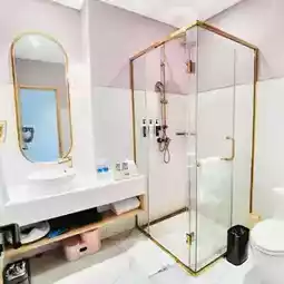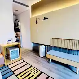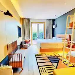 The hotel room is about 30 square meters in size, with a large bed and bunk beds for children. The overall orange tone is full of childishness, and children will love it very much. The room also has floor-to-ceiling windows through which you can see the scenery outside the hotel. Children's supplies are also available, making it very suitable for parent-child travel and family travel.