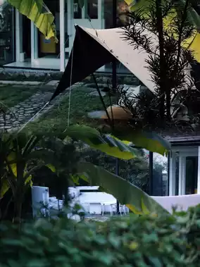 ▪ Under the perspective of the house, the sunset and the mountains reflect each other, especially the large floor-to-ceiling windows and glass swimming pools, which are the perfect background for taking photos.