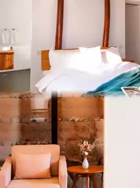 ▪ The exterior of the homestay shows extraordinary taste. The harmonious combination of log fences and rammed earth stone walls, coupled with the contrast of the century-old trees next to it, reflects the historical charm and modern atmosphere.