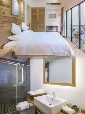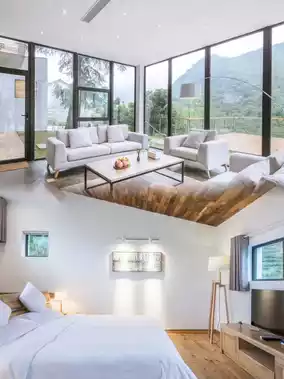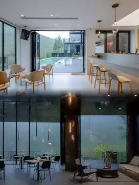 There are a total of 11 guest rooms, 5 in the first phase and 6 in the second phase. In order to fully show the beauty of nature, the guest rooms adopt a full-view floor-to-ceiling window design to introduce outdoor scenery into the room. The facilities in the guest room are complete and of high quality, including Dyson hair dryer, rich minibar, laundry detergent, etc.
