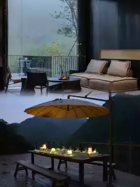Located on the hillside next to the Moganshan South Road Village Highway in Huzhou, this homestay occupies a core position in the Moganshan Scenic Area. It is nestled in the continuous bamboo forest, and the front is the evergreen mountains all year round. It seems to be the true portrayal of Tao Yuanming's "The mountain air is good day and night, and the birds fly back and forth."