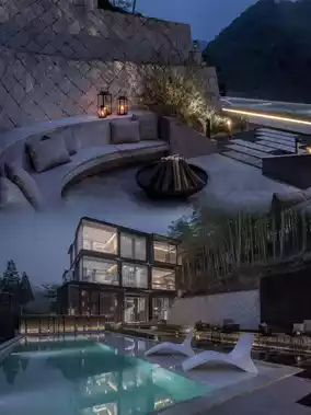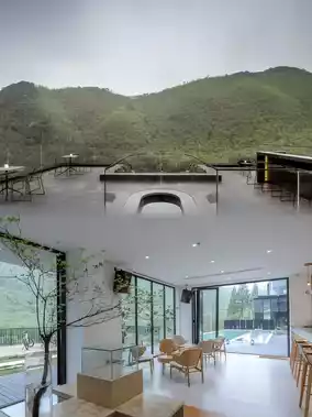 There are two distinctive architectural areas in the homestay—Linxi and Guyin, which are cleverly separated by a swimming pool, and the building itself is also full of design. Because it is completely integrated into the mountains and forests, for friends who are used to electronic screens and grid life, this is undoubtedly an ideal place to rest. Wake up in the morning, full of green bamboo, refreshing.