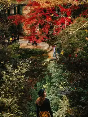 Stepping into this old villa from the Republic of China era, it feels like traveling back to that elegant era. The century-old maple tree in the courtyard has fiery red leaves, so beautiful that it makes people intoxicated, just like a moving oil painting.