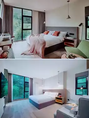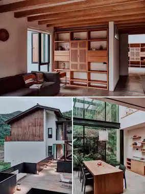 In a valley in Mogan Mountain, a 3-hour drive from Shanghai, there is such a peaceful and beautiful home. It is backed by a green bamboo forest, and a gurgling stream at the door converges into a stream, forming a small waterfall. The sound of water and the stream allow every guest who comes to visit to be accompanied by the sound of the stream, so it is named: Tingjian Mogan Mountain.