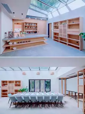 Come and listen to the stream, escape from the noise of the world, and listen to the endless stream sound together. Tingjian Space Design focuses on leaving blank space, which is a unique artistic conception of traditional Chinese landscape paintings, leaving enough room for imagination for the overall picture. The white walls are rough and grainy, and there are a few green plants in the corners. It’s just enough, and sometimes "less is more".