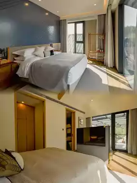 Each room is equipped with underfloor heating, smart toilets, Dyson hair dryers, capsule coffee machines, bathtubs, and large floor-to-ceiling windows. Some rooms also have balconies with open views, where you can sit and watch the bamboo forests, tea gardens, sunsets, listen to the sounds of birds and the wind, and feel the embrace of nature.