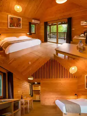 This place is like a fairy tale world, with Nordic-style cabins where you can open the window to a view of bamboo forests and mountain scenery, instantly feeling like a forest princess! Each cabin at Elephant Moon Lake is built with high-quality wood, and as soon as you enter, you can smell the fresh wood fragrance, instantly relaxing your body and mind.