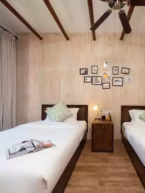 ▫️Twin Room: Bamboo woven chandelier + comfortable tea table