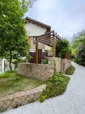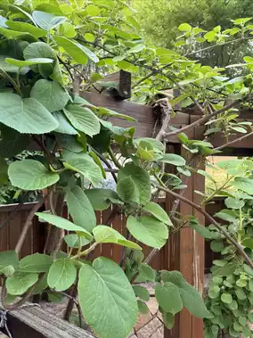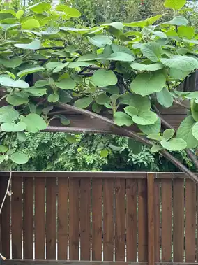 Kiwi fruit trellises provide shade and you can enjoy fruits in autumn