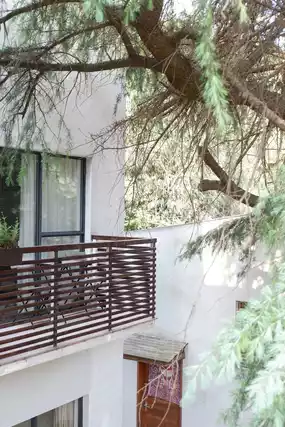 Geometric patio: At noon, the sun pours down vertically, and the spiral staircase cuts out the dividing line between light and dark. Wear a light-colored long dress to capture a cinematic scene.