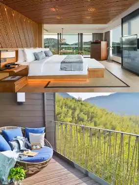 🛏 Ultra-Comfortable Cozy Rooms: Stepping into the guest rooms feels like entering a warm little nest🥰. Each room is thoughtfully designed, spacious, and bright🛏. The beds are as soft as clouds, with high-quality linens that offer snug comfort, making it easy to drift into a peaceful slumber🌙. The décor is minimalist yet stylish, with every detail—from delicate wall art to elegant lighting—exuding sophistication🎨. Floor-to-ceiling windows frame the picturesque views outside. In the morning, gentle sunlight and birdsong greet you, starting your day beautifully🌞; at night, the soothing breeze and chirping insects lull you into a serene sleep, as if cradled by nature🌿.
