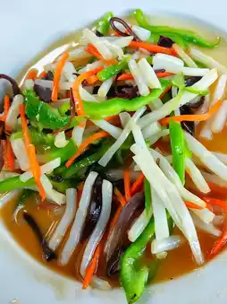 Downhill, "Mama Goldfish" is a must-visit for its diverse, reliable menu. On Yinshan Street, Yongli and Dongwu restaurants are long-standing favorites with warm service. Baiyun Hotel’s noodle soup is exceptional. Must-tries include bamboo chicken, free-range pork, dried bamboo shoots, bream, cogongrass root, and bamboo tube rice.