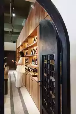 Shelves lined with wines from the eastern foothills of Helan Mountain