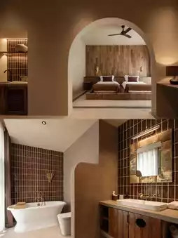 Upon entering, the warm texture of old teak greets you, the matte touch of brass switches is exquisitely detailed, mosaic walls resemble dreamy paintings pieced together with fragmented glazes, and antique mirrors act like filters of time, softening the glow of bygone days... Every detail conceals ingenious craftsmanship.