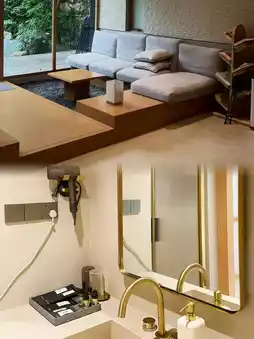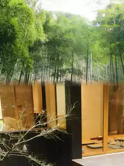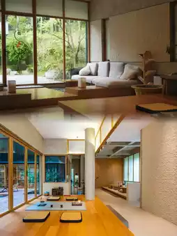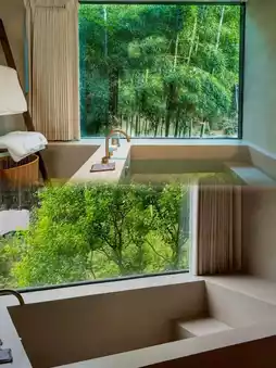 Comprising three buildings and four courtyards, the sleek black exterior 🖤 creates a striking contrast with the surrounding bamboo sea 🌿! Clever enclosures and staggered designs craft varied courtyard spaces, seamlessly blurring indoor-outdoor boundaries. Interiors feature a palette of serene grays and warm wood tones 🎨, with public areas exuding Japanese Zen vibes 🍵—think reclaimed wood, bluestone, textiles, and Zen greenery. Polished terrazzo floors paired with rustic wooden furniture elevate the ambiance to perfection!