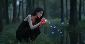 Wear black in "Water Forest" → Red flashlight insect bait (capture blue tears on skirt)
