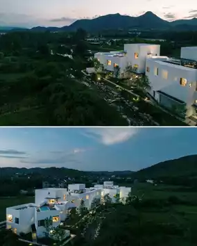 Xipo Laoling Liangshi. As the first "Liangshi" series work of Xipo, the "top influencer pioneer" in the guesthouse world, it features a cluster of 3,500 pure white buildings scattered across the fields, breathing together with bamboo forests and streams, like an art settlement naturally growing in the mountains and countryside.