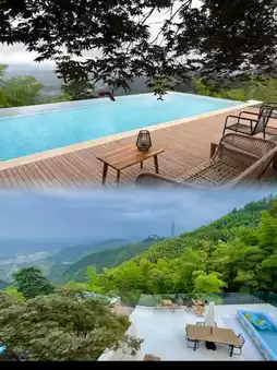 - Cliffside Infinity Pool: A divine pool built on a cliff! 180° direct views of mountain breezes, watching clouds swirl around green bamboo and dark mountains during the day, it feels like a momentary escape to Bali. The outdoor rest area is perfect for zoning out and healing💦