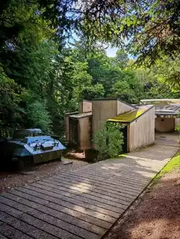 Crafted from 1,000 tons of concrete and steel, the cylindrical spire features 20 vertical fins clad in polished stainless steel, evoking both the jagged scars of war and the surge of revolutionary spirit. Narrow slits invite visitors inside, plunging them into a dim, confining chamber that mirrors the anguish of battle—darkness pierced by glimpses of the verdant valley below, symbolizing fleeting hope amid despair.