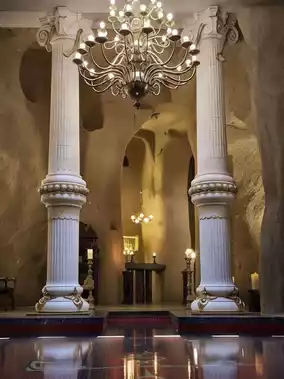 Nestled just 15 minutes by car from the quaint town of Goreme, this former Greek noble residence is a treasure trove of opulence and history. ππ° The hotel's design transports you back to the Middle Ages with its vintage charm and the occasional Medusa totem peering back at you. π‘οΈπ