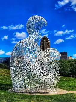 Located in downtown Des Moines, Pappajohn Sculpture Park is a 4.4-acre outdoor gallery featuring over 30 contemporary sculptures by world-renowned artists. 🏙️✨ The vibrant installations, set against the city skyline and lush park grounds, make it a must-visit for art lovers, photographers, and families alike.
