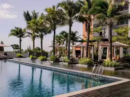 The Westin Desaru Coast Resort features a spacious infinity pool surrounded by beautiful coconut trees π΄. The water reflects the brilliant blue of the sky π, making it a truly delightful place to relax. Floating in such a stunning pool instantly lifts your spirits π₯°.