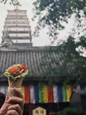Chengdu to Yanzuo Zen Temple 1.5 hours, playtime 1 hour. The flowers should bloom perfectly in another half a month. It was already crowded when I arrived at ten today, so I suggest getting there by nine. Everyone needs to make a reservation to enter the park. The ice cream is very pretty.