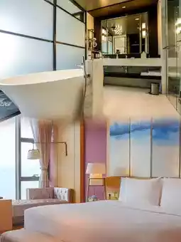 Walking into the room, the first impression is spacious and bright. The room layout is reasonable, and the decoration is exquisite, with every detail showing quality and taste. The bed is soft and comfortable, ensuring a good night's sleep. The bathroom is clean and tidy, equipped with high-quality toiletries and complete facilities, and the showerhead has strong water flow, washing away the fatigue of the journey.